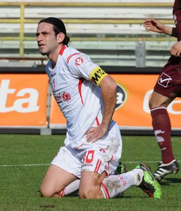 2010, Salernitana-Piacenza 0-1. Peccarisi in acrobazia su Moscardelli (foto