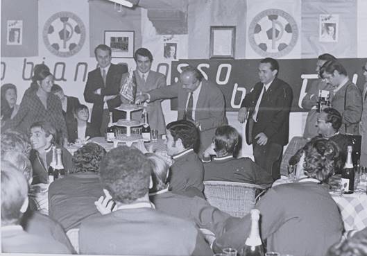 La festa di un club con Casati impegnato nel taglio della torta.