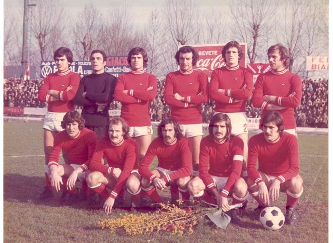 27 aprile 1975, Piacenza-Bolzano 2-1. In piedi: Fabbri