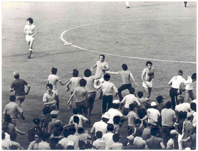 rispettivamente dai tifosi e dal presidente Loschi; l’invasione di campo a