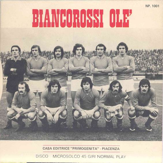 La copertina del 45 giri con l’inno “Biancorossi Olè”